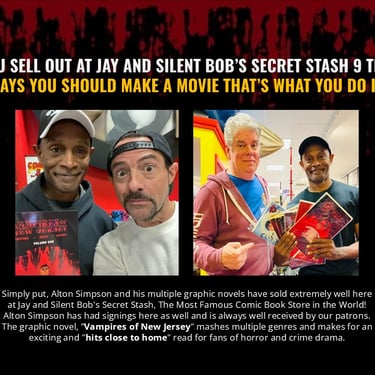 Simply put, Alton Simpson and his multiple graphic novels have sold extremely well here at Jay and Silent Bob's Secret Stash, The Most Famous Comic Book Store in the World! Alton Simpson has had signings here as well and is always well received by our patrons. The graphic novel, "Vampires of New Jersey" mashes multiple genres and makes for an exciting and "hits close to home" read for fans of horror and crime drama.